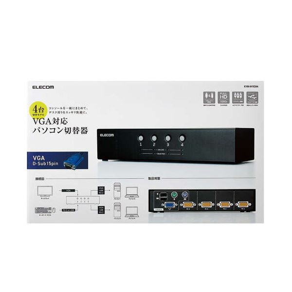 商品仕様: エレコムKVM切替器(VGA・4ポート用) 4台切替 KVM-NVXSN4 1台