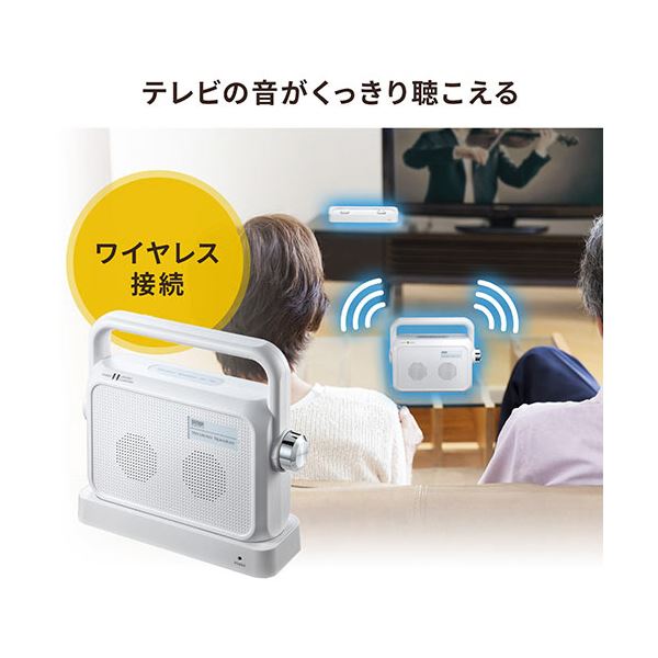 ワイヤレスで手元からテレビの音を楽しむ、置くだけ充電式のスピーカー テレビ用ワイヤレススピーカー400-SP064W ワイヤレスで手元からテレビの音を楽しむ、置くだけ充電式のスピーカー テレビ用ワイヤレススピーカー400-SP064W