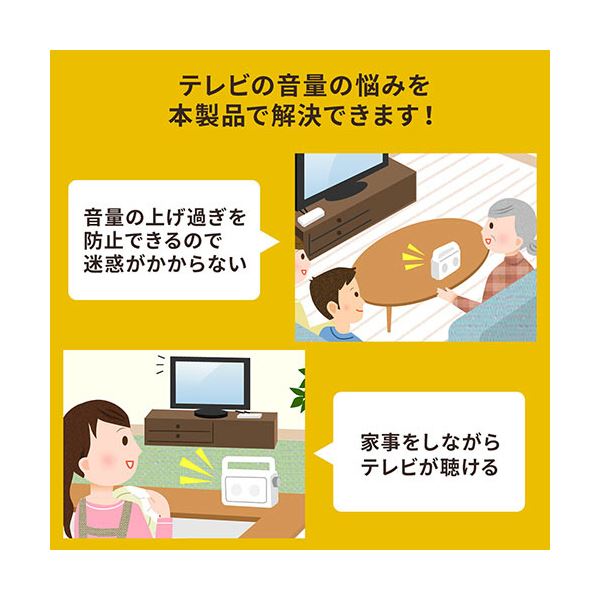 ●テレビの音量を上げることなく、手元のみで音声出力をしテレビを楽しむことができます。(テレビの仕様によってはテレビからの通常音声出力をしたまま、延長先の手元スピーカーからも音声出力することができます。)