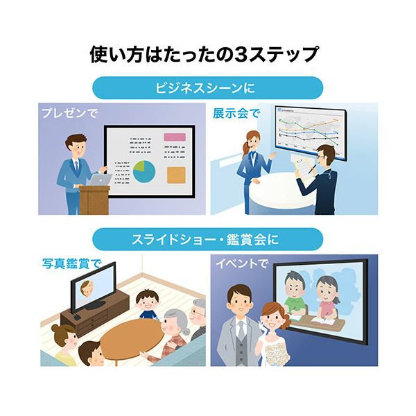 ●デジカメで撮影した写真や映像、パソコンで作成した動画などを、テレビやプロジェクターで再生できるメディアプレーヤーです。