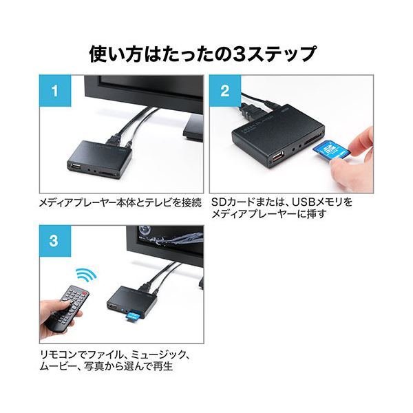 商品仕様: サンワダイレクト SD/USB対応メディアプレーヤー 400-MEDI020H 1個
