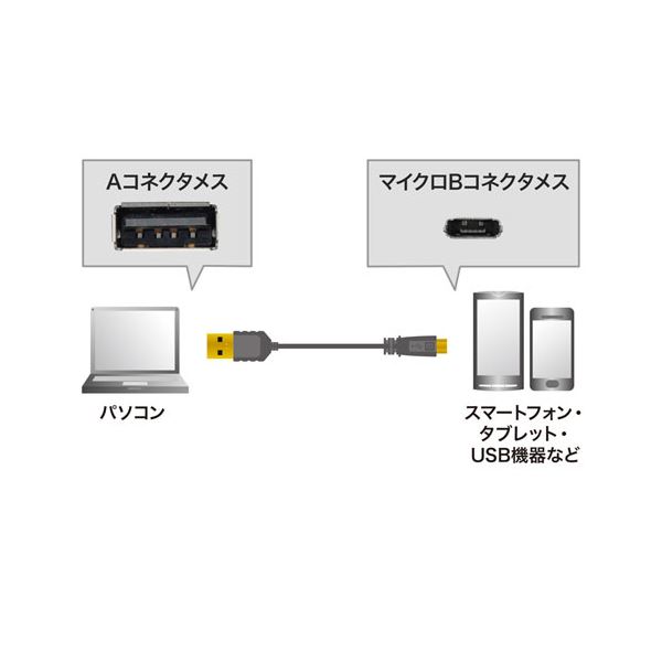 USB Aコネクタのパソコンと、マイクロUSBコネクタ(マイクロB)を持つスマートホン・USB機器を接続