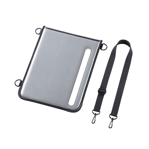 ●ショルダーベルト付きで立ったまま13インチまでのタブレットPCを操作できるケースです。