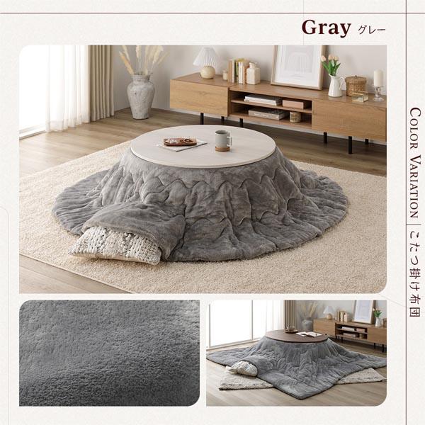 こたつ セット 2点セット 〔 楕円形 (丸型 ラウンド) 105×75cm こたつテーブル 机 :ブラウン/ホワイトウォッシュ + 長方形 190×240cm 掛け布団 :グレー 〕 お客様組立品 白 茶 送料無料