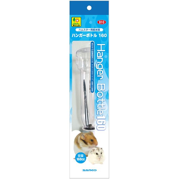 ハンガーボトル160は、サンコーハムスター用ケージの(シャイニー45やルーミィ60等)天面パイプジョイントに取り付けができる、吊り下げ型給水器です。