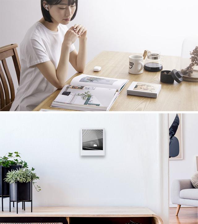 | CP1は手軽な持ち運びはもちろん、壁掛け設置によりインテリアの一部としてフォトフレームの様にお使いいただけます。 |