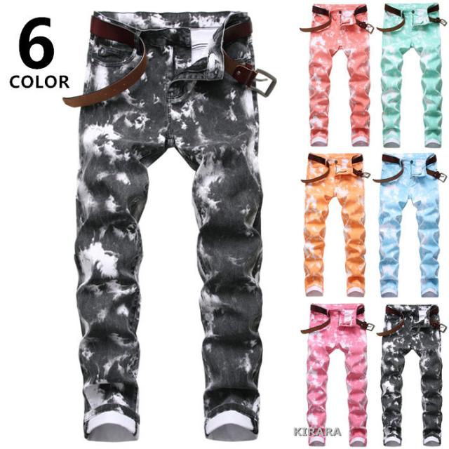 デニムパンツ ジーンズ メンズ スリム 欧米風 ビンテージ ズボン チノパン カジュアル Gパン バイクウエア ストレッチ タイダイ染め ボトムス ジーパン ファッション おしゃれ