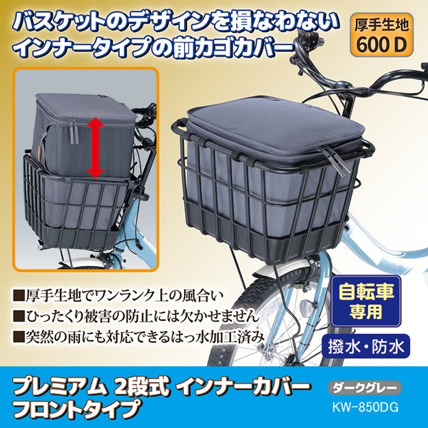 商品仕様: 自転車 かごカバー 〔 プレミアム 2段式 インナーカバー フロントタイプ ダークグレー 灰色 〕 厚手 撥水加工 ひったくり防止