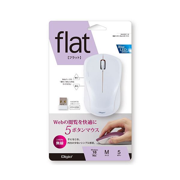 商品仕様: Digio デジオ 無線5ボタンBlueLEDマウス ホワイト 白 MUS-RKF118W