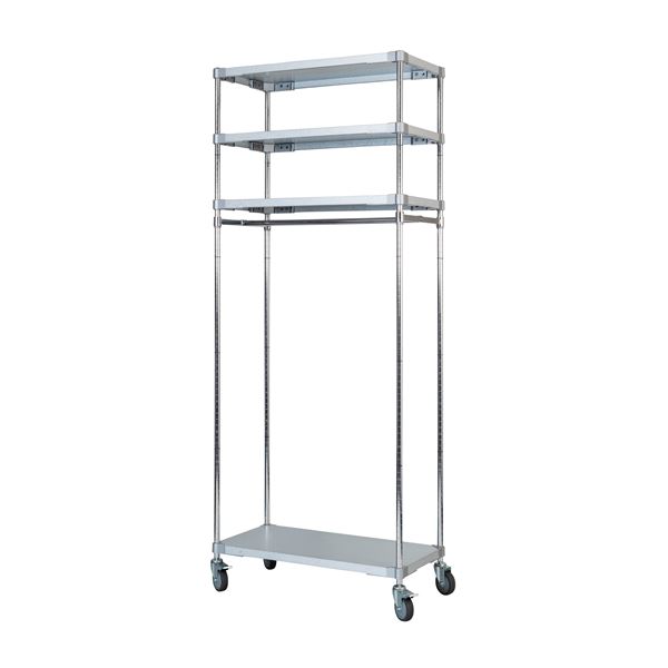 商品仕様: 収納棚 46×90cm 4段 H220cm 日本製 キャスター付き 耐熱 耐食 長期耐久性 ガルバリウム鋼板製 ガルバシェルフハンガー 組立式