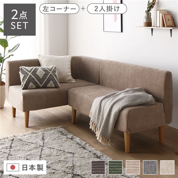 応接セット 日本製 国産 のコンパクトソファセット リビングやダイニングにぴったりな2点セット ナチュラルな脚とコーデュロイベージュのカラーがお部屋に馴染む 左コーナーと2人掛けの組み合わせで、快適なポケットコイル仕様 豊かな座り心地をお楽しみください 応接セット 日本製 国産 ダイニングソファ 2点セット 左コーナー+2人掛け コーデュロイベージュ ナチュラル脚 ポケットコイル ソファセット