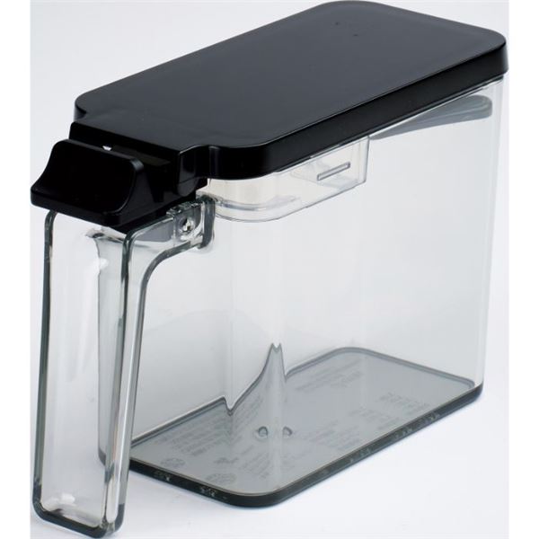 材質:本体・フタ/ポリスチレン すり切り板・スプーン/ポリプロピレン プッシュレバー/ABS樹脂 バネ・パッキン/シリコーンゴム