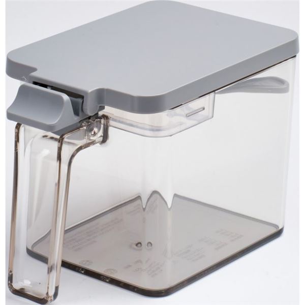 材質:本体・フタ/ポリスチレン すり切り板・スプーン/ポリプロピレン プッシュレバー/ABS樹脂 バネ・パッキン/シリコーンゴム
