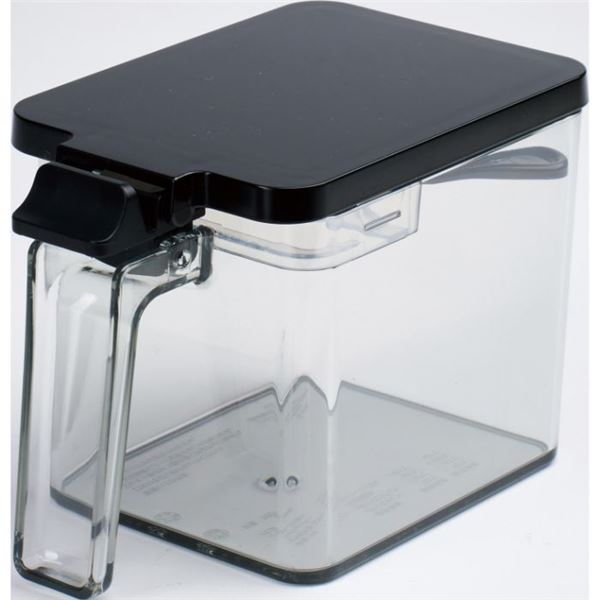 材質:本体・フタ/ポリスチレン すり切り板・スプーン/ポリプロピレン プッシュレバー/ABS樹脂 バネ・パッキン/シリコーンゴム