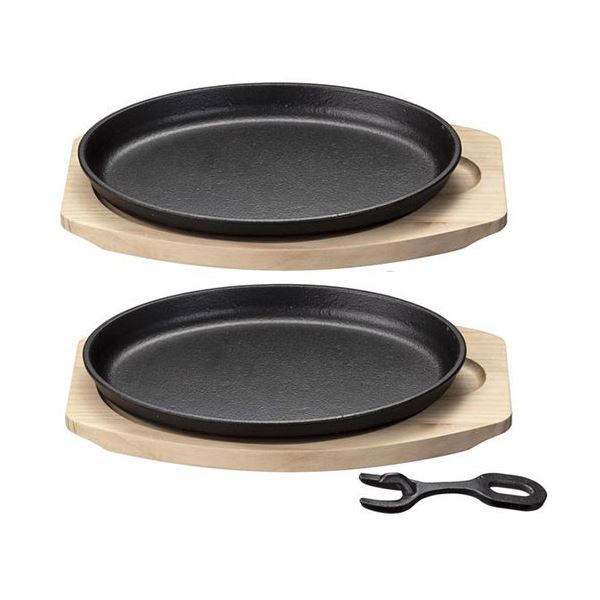 鉄鋳物 大判ステーキ皿2枚組 敷板・ハンドル付