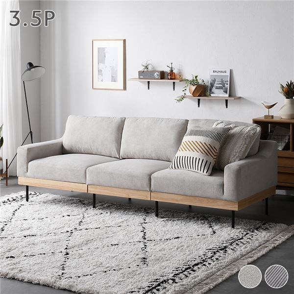 商品仕様: ソファ 3.5人掛け アイボリー 乳白色 単品 肘付き カバーリング 天然木 スチール脚 3.5P ソファー リビング ダイニング お客様組立品