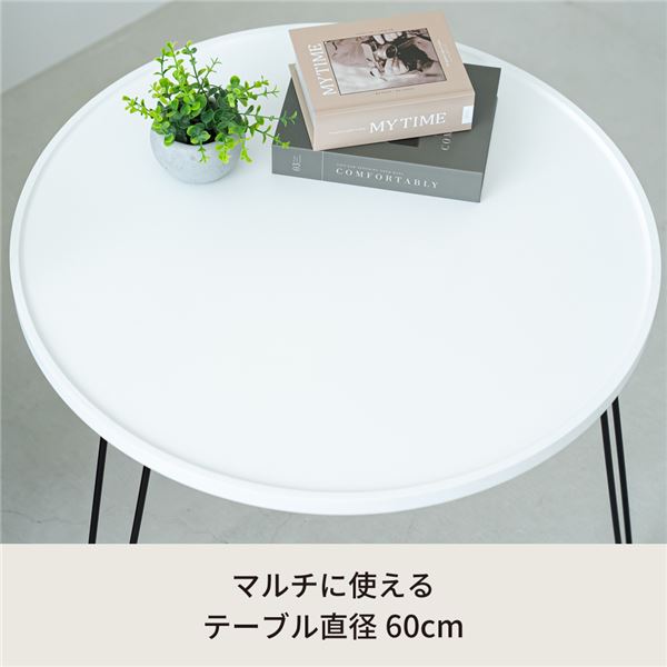 ノートPCを広げて作業したり、食事も並べられる直径60cmの2サイズ展開。