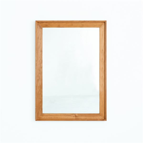 重厚感のあるL型の木枠が印象的なウォールミラー