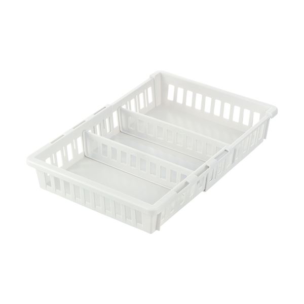 冷蔵室や冷凍室の奥行に合わせて伸縮できる食品収納ケース。浅い引き出し用の浅型トレー。レギュラータイプ。収納する食材や庫内スペースに合わせて、幅を調整できます。(22〜33.5cm)