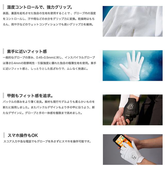 雨を制し、汗を力にインスパイラルグローブがリニューアル!汗や雨の水分を吸収し、さらにグリップ力アップ。シビアなコンディションでも力強いスウィングをサポート。