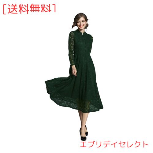 [Yino] 五色展開 ワンピース ドレス 結婚式 パーティードレス 総レース マキシワンピース 秋冬 春 レースワンピース ロングドレス 長袖 A