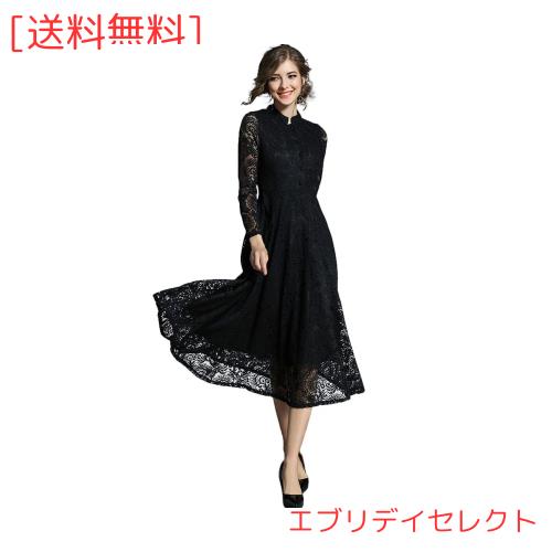 [Yino] 五色展開 ワンピース ドレス 結婚式 パーティードレス 総レース マキシワンピース 秋冬 春 レースワンピース ロングドレス 長袖 A
