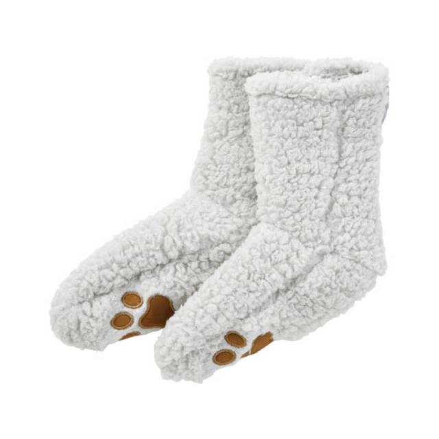 足の形にフィットする、ブーツ型のルームソックス。