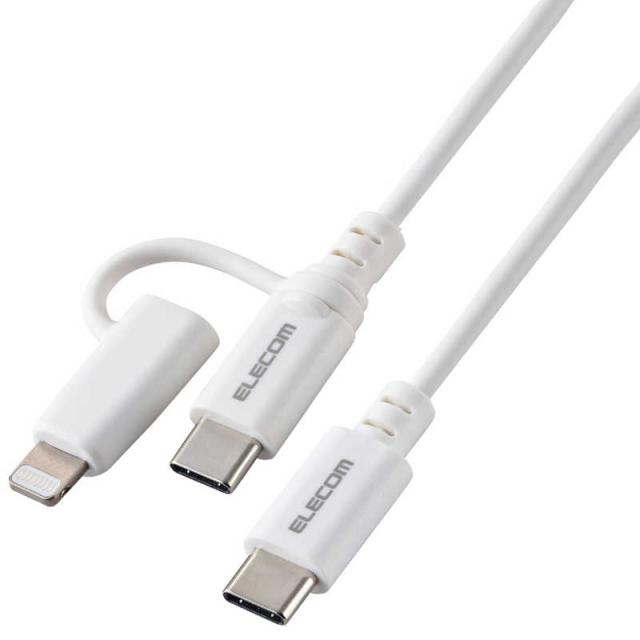 エレコム ELECOM 2in1 充電ケーブル USB-C to USB-C ケーブル + Lightning 変換プラグ 2m PD対応 60W 急速充電 ホワイト MPA-CCLAD20WH