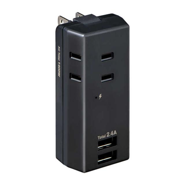 ELPA 耐雷USBタップ3個口2ポート2.4A [2ポート] UA-322SB-BK