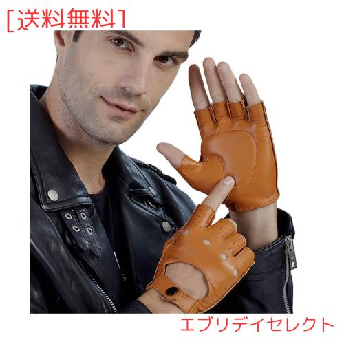 【GSG】ドライビンググローブ 半指 指なし革 レザー 手袋 メンズ バイク グローブ 指ぬき ロック 運転 ドライブ ドライバー 肉厚パッド