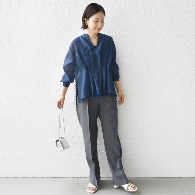 ワイドパンツやすっきりとしたIラインスカートなどとのスタイリングがおすすめです。