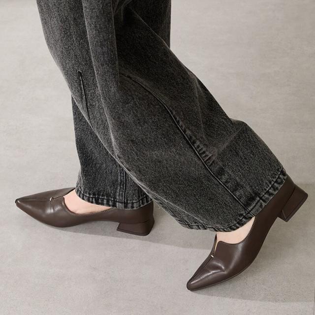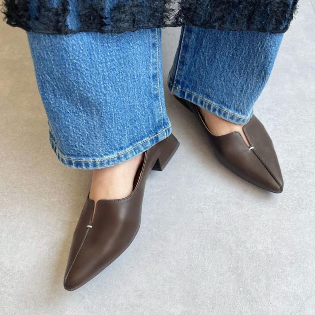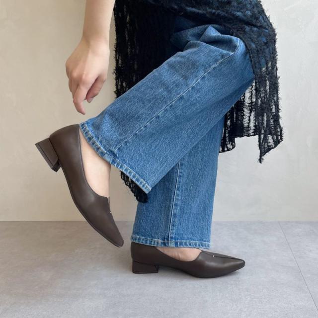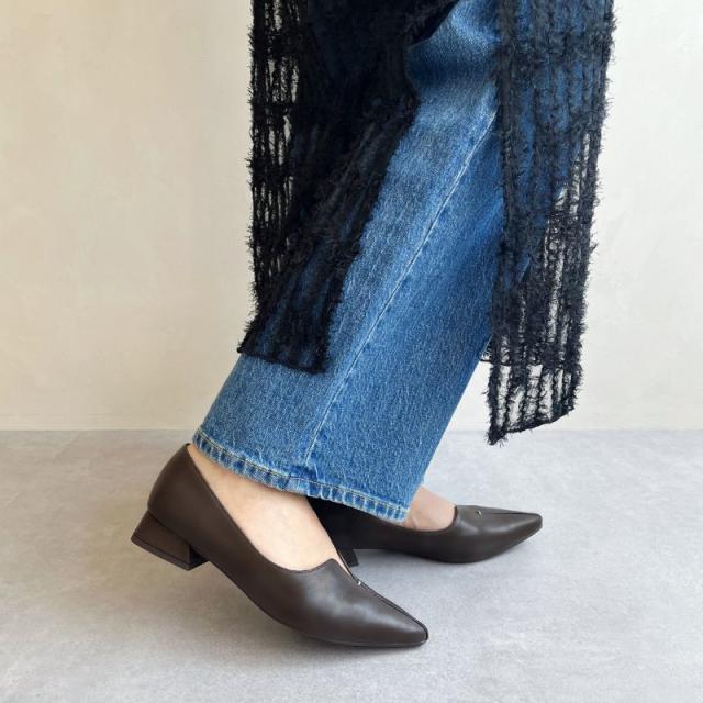 ローヒールで歩きやすい 通勤にもおすすめ【EC限定】フレアヒールポインテッドトゥパンプス/45301