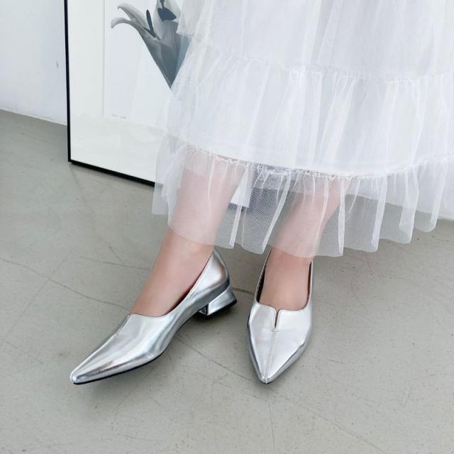 シャープなシルエットが綺麗なポインテッドトゥパンプス。
