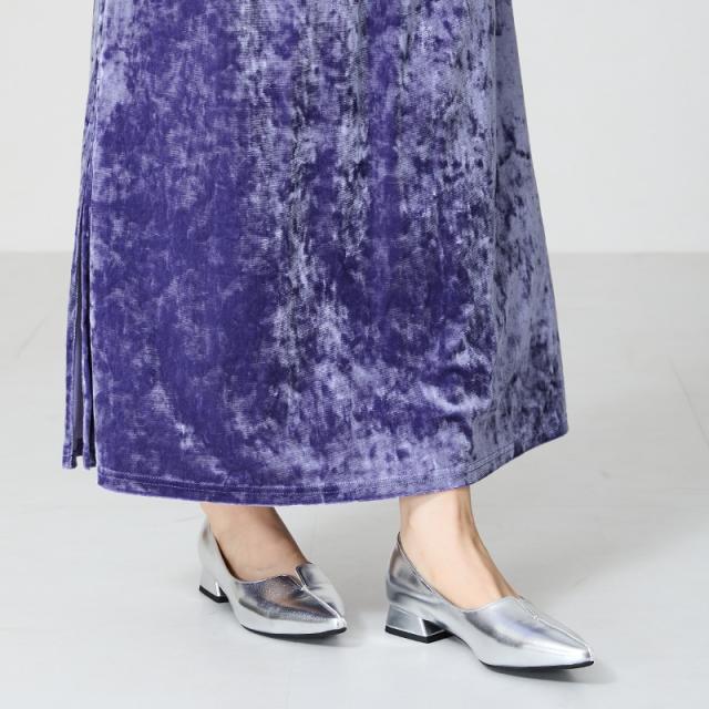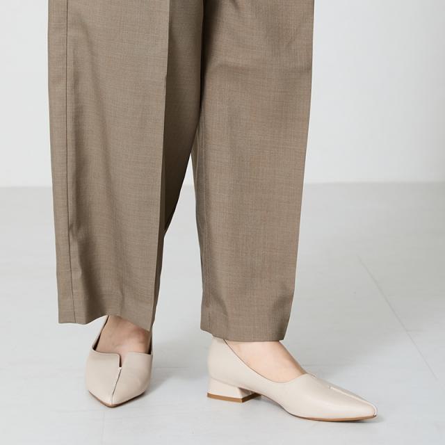 低めのフレアヒールはシルエットを綺麗に見せつつ、安定感もばっちり。