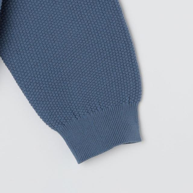 コットンがメインのため、スウェット感覚で着ていただける季節の端境期にも着やすい素材のニットです。