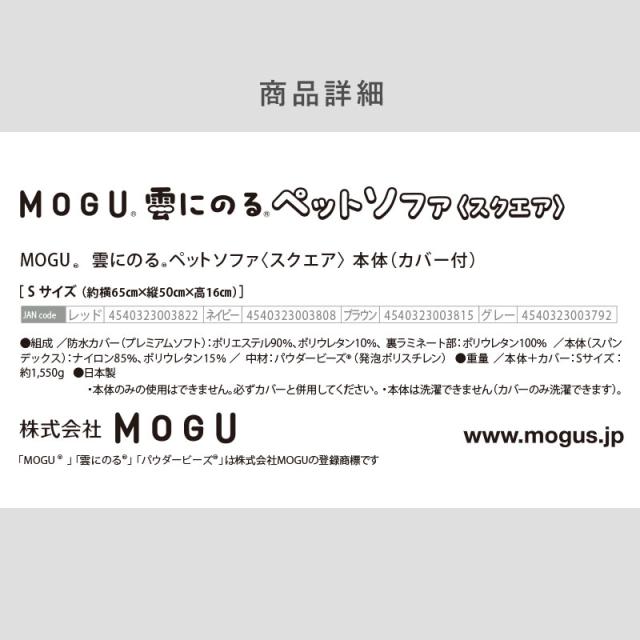 MOGU モグ 雲にのる ペットソファ スクエア Sサイズ 65×50×16 本体カバー付 正規品 パウダービーズ クッション 防水 日本製 もちもち