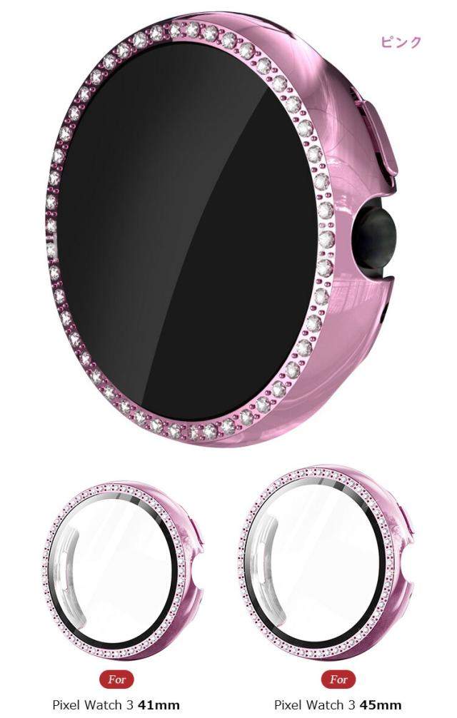 Pixel Watch3 ケース 耐衝撃 カバー Pixel Watch 3 41mm / 45mm かわいい/きらきら ラインストーン エレガント メッキ 強化ガラス ガラスフィルム付き 全面保護 液晶保護ケース Google グーグルピクセル ウォッチ3 41mm / 45mm 単色/クリア フィルム一体 ハードケース