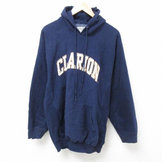 【商品名】 L★古着 長袖 スウェット パーカー メンズ インディアナポリス 刺繍 青