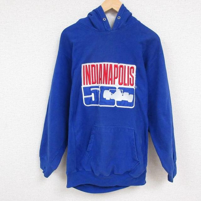古着 長袖 スウェット パーカー メンズ インディアナポリス 刺繍 青 ブルー Lサイズ 中古 スエット トレーナー トップス 中古 古着