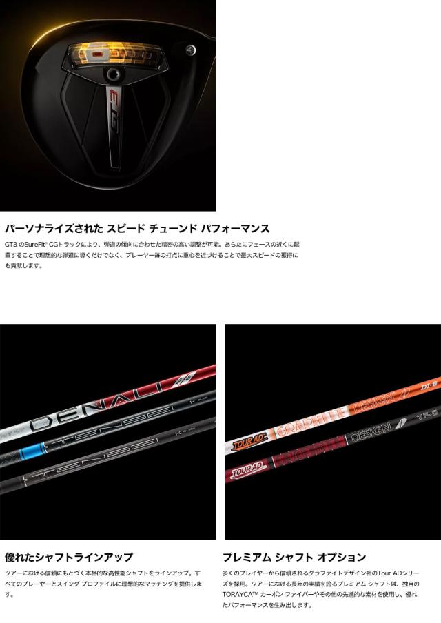 GT3はツアープレーヤーが認めた美しいフォルムと手応えのある打感・打音はそのままに、進化したSureFit CGトラックによって弾道の一貫性と操作性を飛躍的に向上させることに成功しています。打点の集中するエリアにヘッド重心を近づけることで、最大飛距離を一貫して発揮させることが可能です。●最大飛距離と抜群の方向安定性を両立
