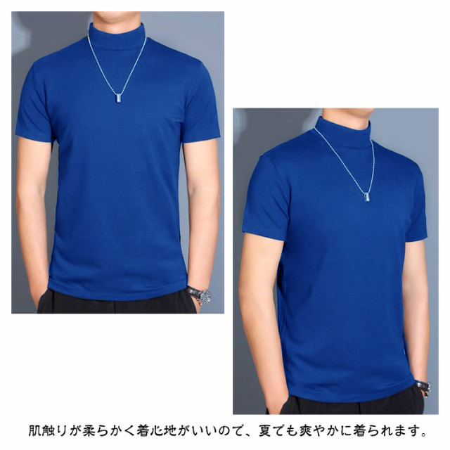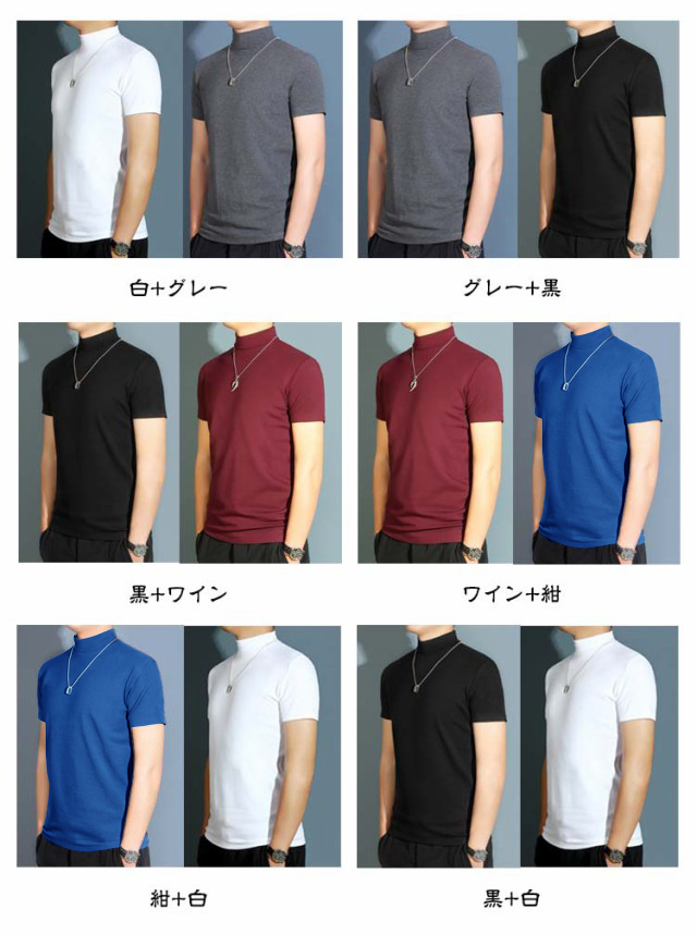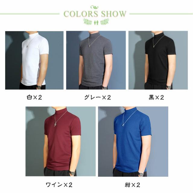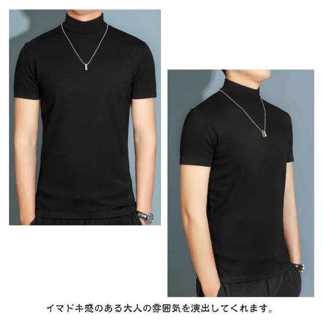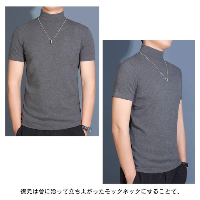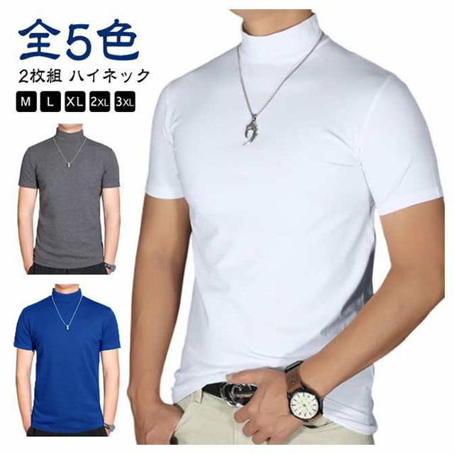【2枚組】ハイネック ハイネックtシャツ メンズ カットソー 半袖Tシャツ 無地tシャツ 春秋 夏 ティーシャツ トップス tシャツ ゴルフウェア カジュアル 大きいサイズ ゴルフ モックネック インナー ストレッチ 送料無料