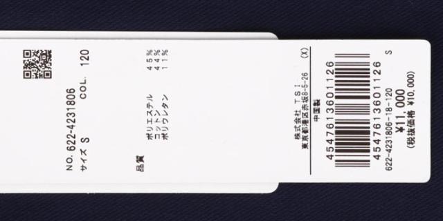 | 素材 | ポリエステル 45%、コットン 44%、ポリウレタン 11% |