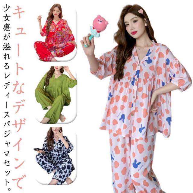 花柄 パジャマ 長ズボン 大きいサイズ パジャマ ギフト 大人 総柄 レディース 上下セット婦人 薄手 秋 長袖 贈り物 おしゃれ レディース ウエストゴム ルームウェア 上下 可愛い 長ズボン パジャマ 部屋着 春秋 秋冬 春夏 春物 プレゼント 母の日