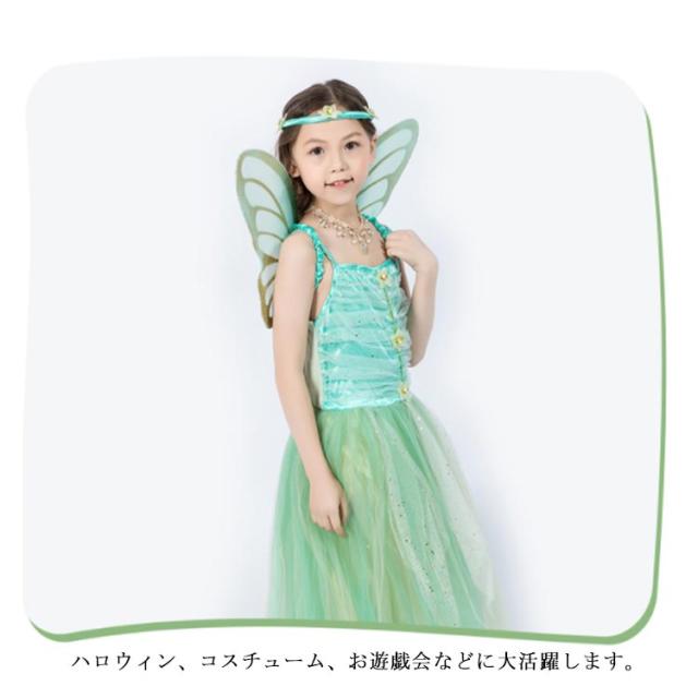 ロング 衣装 ハロウィン ハロウィン 妖精 仮装 花の妖精 プリンセスドレス 子どもドレス ダンス 蝶 精霊 女の子 ガールズ キッズ 羽 お遊戯会 子供 天使 100 110 120 130 140