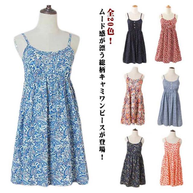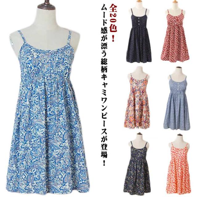 レディース Aライン 総柄 キャミワンピース 着?せ ワンピース ワンピース 花柄 可愛い 膝上 キャミワンピ キャミ ドット柄 キャミワンピース ふんわり ギャザー キャミソール 部屋着 春 夏 インナー レイヤード 低身長 おしゃれ キレイめ