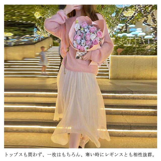 | おしゃれ女子に欠かせない優秀item。 ふわりふわり風をはらんだミディアム丈チュールスカートです。 とっても柔らかく軽いチュール×裏地で仕立てになっており、くしゅくしゅボリューミーに広がります。 ウエストがゴムの楽ちん仕様なのもうれしいポイント。 裾から素足がのぞき、ちょっぴり色っぽい穿きこなしが叶いそう。 トップスも問わず、一枚はもちろん、寒い時にレギンスとも相性抜群。 | |