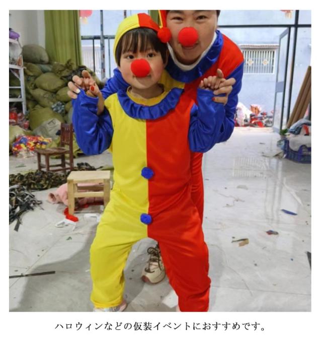 ピエロ 3点セット 130 大人 オールインワン ピエロ服 男の子 道化師 着ぐるみ 赤鼻 子供 コスプレ 120 親子 衣装 ピエロに変身 100 110 ハロウィン 親子 140 150 160 170 180