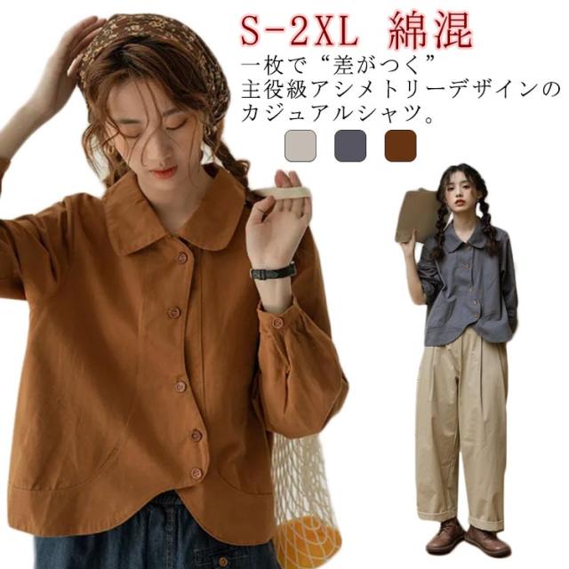 春 トップス アシメトリー ブラウス シャツ 開襟シャツ カジュアル 春 ナチュラル 可愛い ショート丈 春服 春物