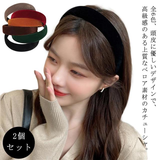 幅広 痛くない 【2個セット】ベロア ヘアバンド ワイド デイリー カジュアル 痛くないカチューシャ 大人 上品 きれいめ カチューシャ キッズ レディース おしゃれ 上品 まとめ髪 【2個セット】ベロア 洗顔 通勤 無地 黒 シンプル 白髪隠し 小顔 太め プレゼント