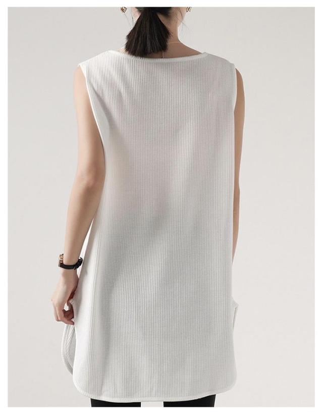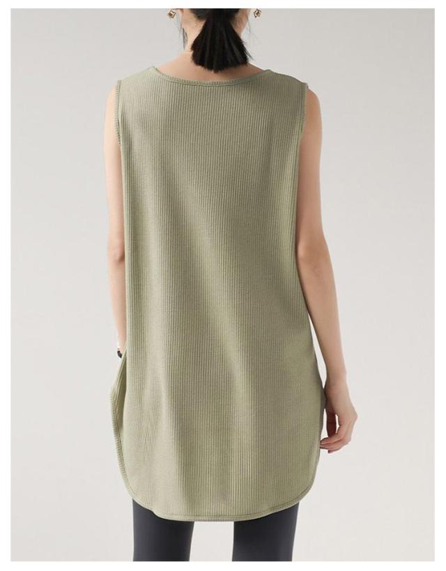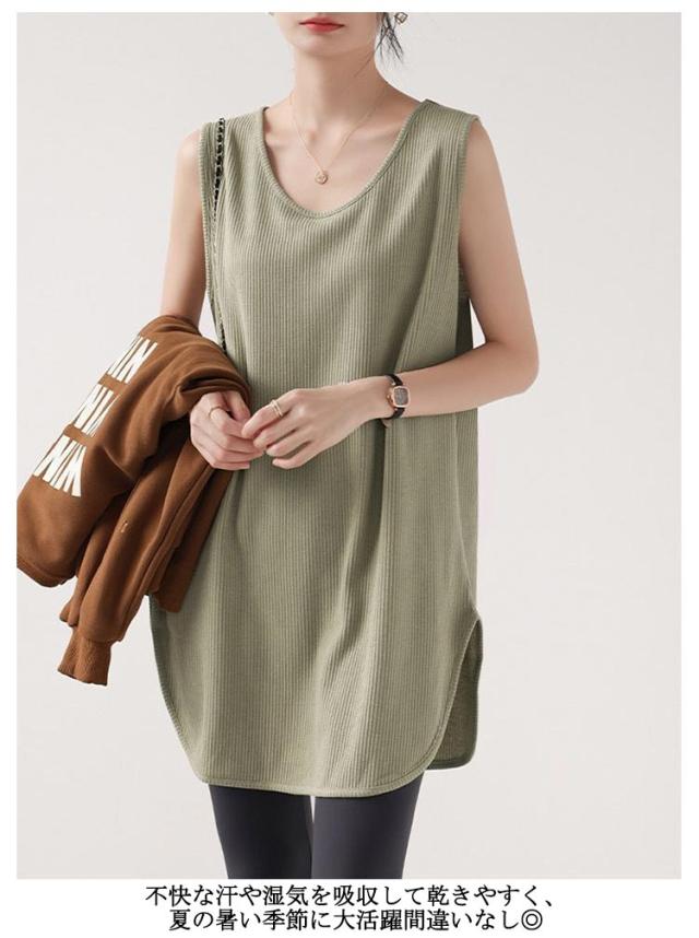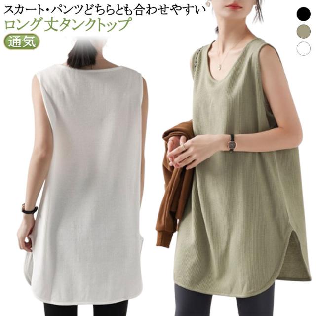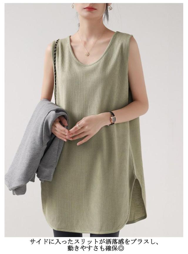 タンクトップ レイヤード お尻カバー 体型カバー お腹カバー ノースリーブ インナー タンクトップ ロング丈 重ね着 ロングタンクトップ レディース 通気 お腹カバー サイドスリット ワッフル素材 タンクトップ ラウンドネック ゆったり お尻カバー